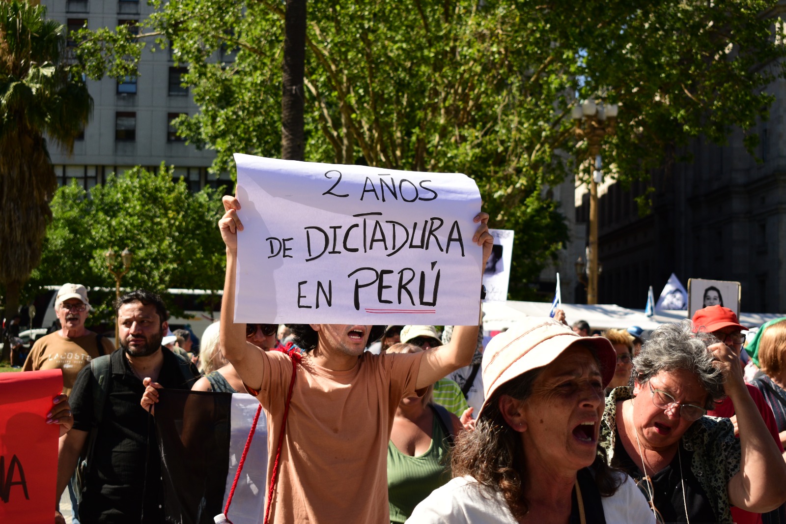 La primera reunión fue el 10 de diciembre de 2022, frente al Consulado de Perú en Buenos Aires, con la finalidad de exigir la libertad de Pedro Castillo, la renuncia de Dina Boluarte, el cierre del Congreso y la necesidad de convocar una Asamblea Constituyente. A lo largo de estos dos años, realizamos diferentes medidas de protesta y varias actividades con el objetivo de visibilizar la situación que atraviesa el país, pero también dialogar lo que transitamos como migrantes peruanos en Buenos Aires.