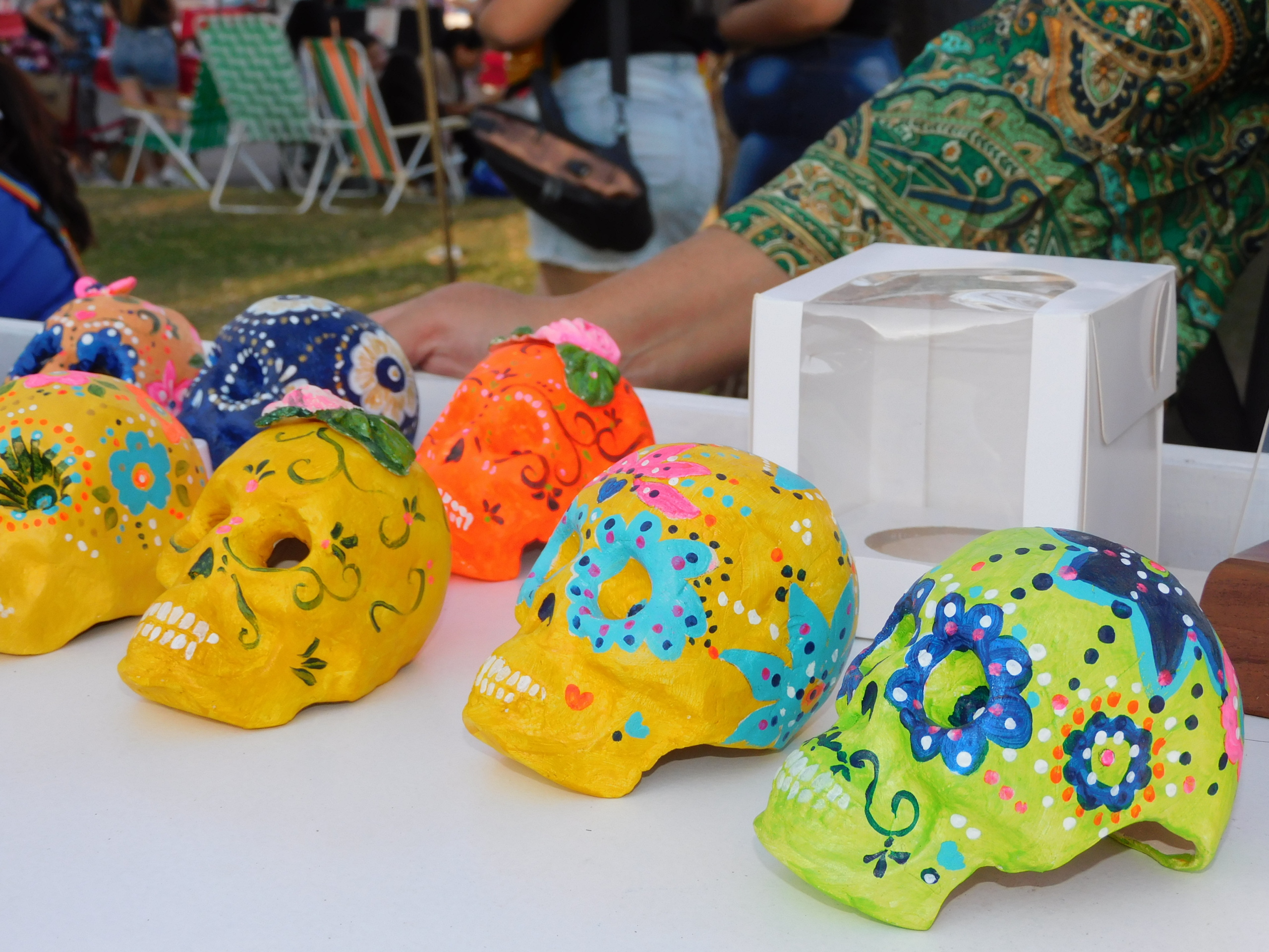 La festividad incluyó talleres culturales, conversatorios, murgas, batucadas, grupos musicales y recitadores de poemas sobre la muerte, que se lucieron sobre el escenario central. También se dispuso una feria de platos y bebidas típicas de México y otras comunidades como la peruana, chilena, venezolana, ecuatoriana y también de los pueblos originarios de esta región.