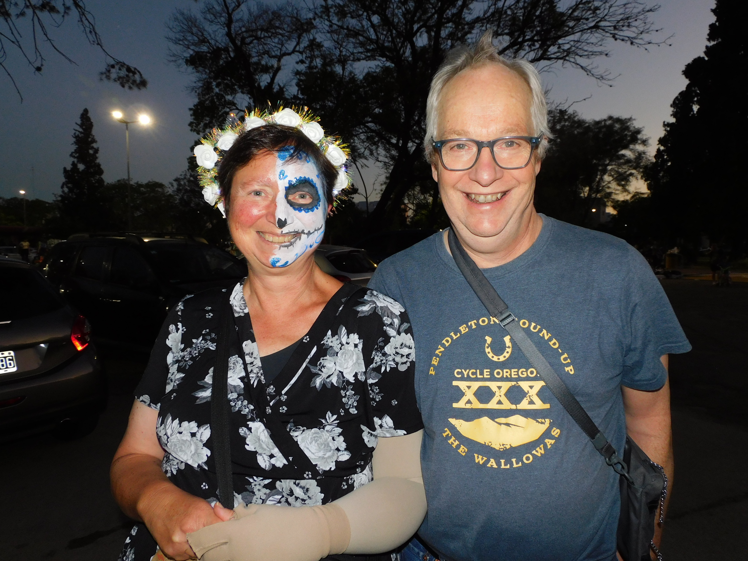 Caminando de la mano por el predio, también se pudo ver a una pareja estadounidense que vacacionaba en la ciudad y, sorprendidos por la magnitud del evento, decidió participar del mismo. Marry, con su rostro maquillado a tono con la temática, expresó: “No me lo quería perder, por eso, lo agarré del brazo a mi marido y lo traje para ver de qué se trataba esto. Estamos maravillados”.