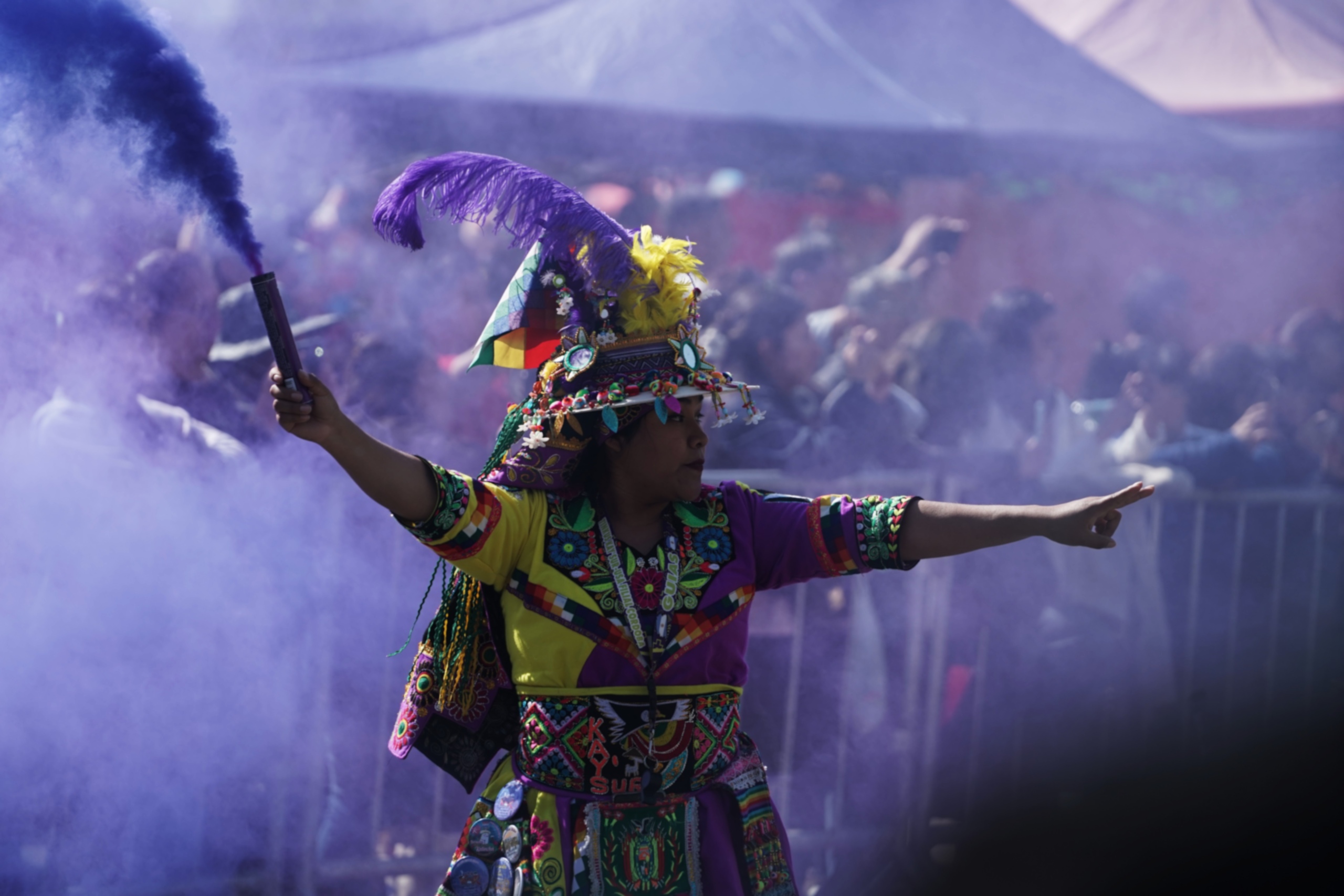 El aire también olía a fiesta. Los aromas de salchipapas, anticucho, fricasé, chicharrón, sopa de maní, sajta, api y pasteles invitaban a prolongar la celebración en comunidad, saboreando cultura antes de volver a bailar. Una morenada por aquí, un caporal por allá, la diablada con su eterna lucha entre el bien y el mal, y más tarde una cueca y una saya que se ovacionaron.
