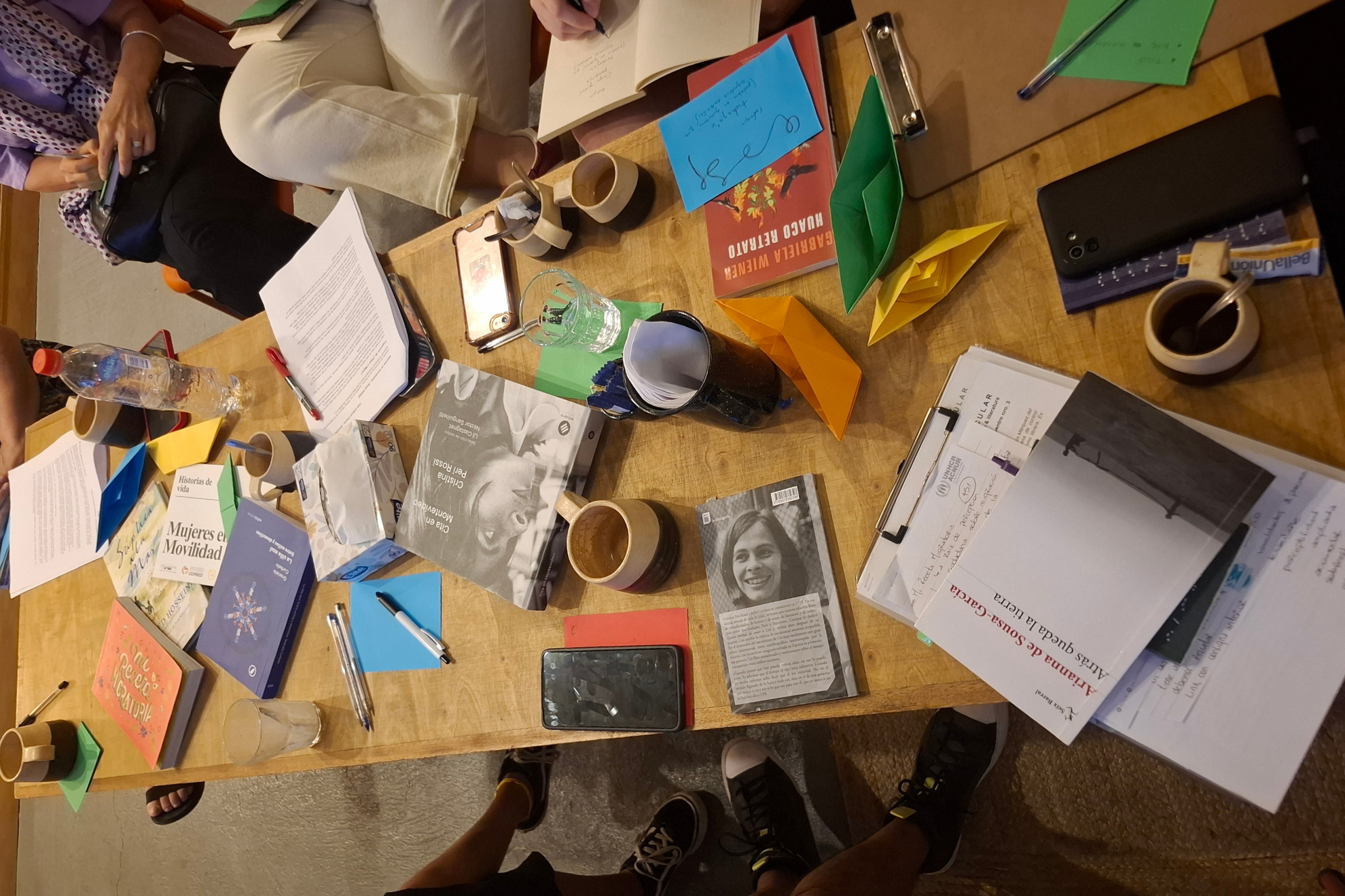 Con la intención de conectar con la temática migrante, pero desde otro lugar, alejadas de la oficina, la documentación y la burocracia, surgió Circular, un taller de escritura y lectura para explorar la experiencia migratoria desde otros ámbitos: cotidiano, íntimo, el que no aparece en los formularios. “Descubrimos cosas de la vida diaria que en una entrevista para sacarte una cédula las personas no te cuentan”, explica Leticia.