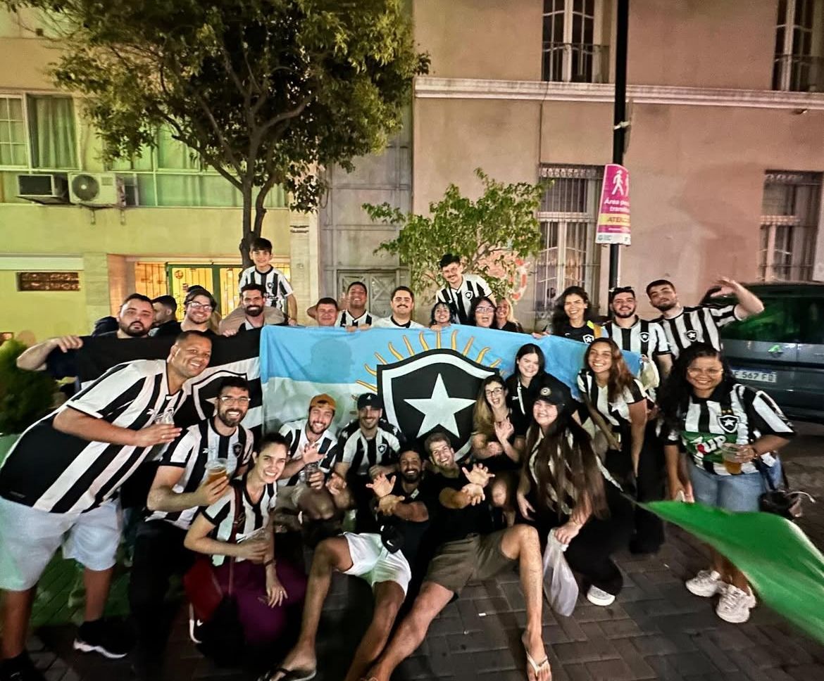 “La verdad es que ArgenFogo surgió de la más absoluta nada. Fuimos a un partido en Santa Fe contra Patronato por la Copa Sudamericana en 2023 y, buscando un lugar para hacer la previa, nos encontramos con un grupo de hinchas de Botafogo en una verdulería. Por suerte, había birra en la heladera”, cuenta João entre risas. “Conocimos a John Textor (dueño de la SAF de Botafogo) y siempre digo que, cuando le besé la frente, empezó nuestra historia. Hoy ya somos unos 40 miembros”, completa.