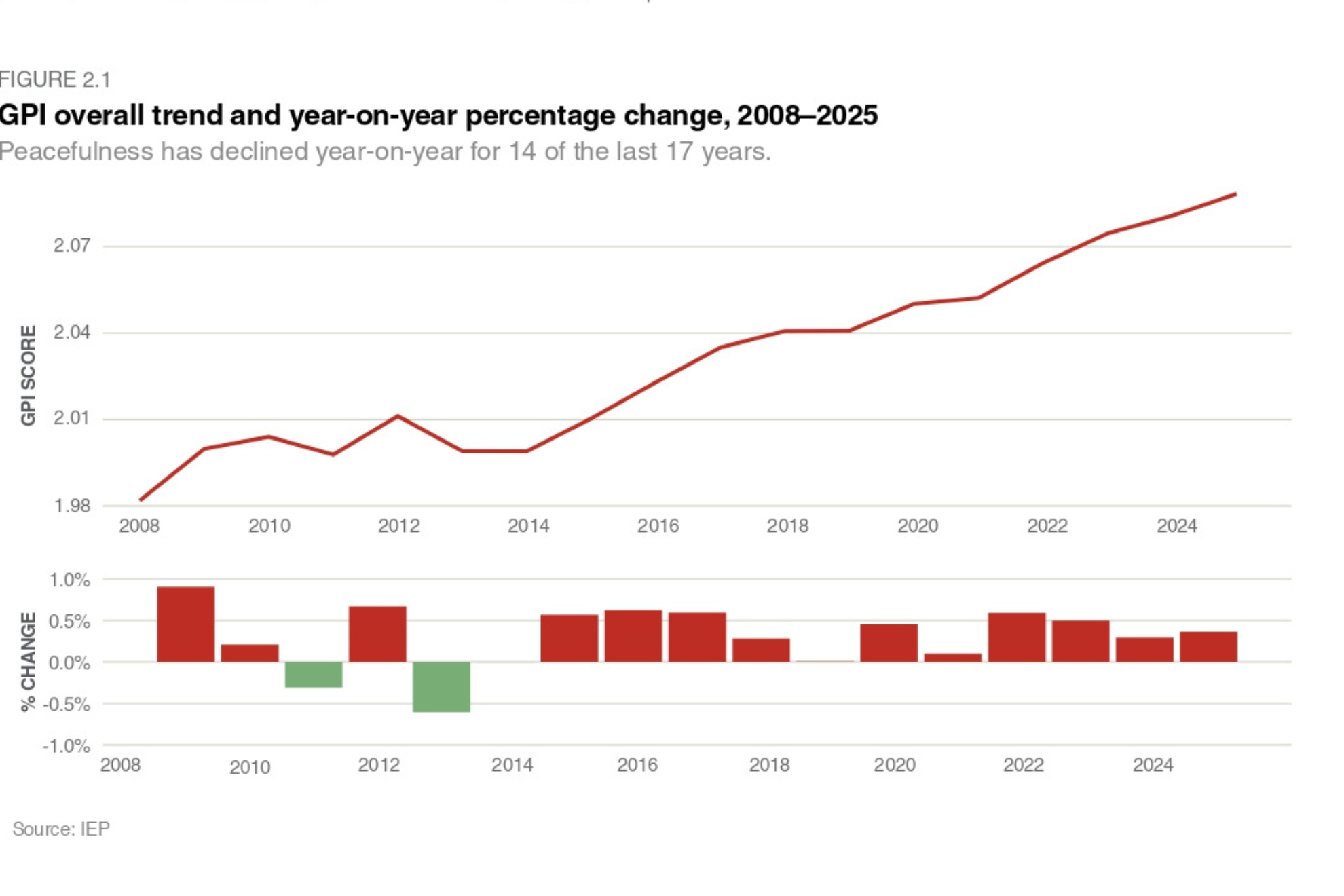 Estos datos, indudablemente, deben enmarcarse con otro dato alarmante: según el Global Peace Index (GPI), el mundo posee 59 conflictos activos en lo que va 2025, la cifra más alta desde la Segunda Guerra Mundial. Estos conflictos, además, se encuentran cada vez más transnacionalizados: a fines de 2024, el mismo índice contabilizaba que 92 países poseían disputas más allá de las fronteras, el número más alto desde la institución del GPI en 2007. Asimismo, el informe señala que el gasto militar creció por noveno año consecutivo, alcanzando los 2,7 billones de dólares, una cifra 443 veces mayor que el presupuesto destinado a las misiones de mantenimiento de la paz de las Naciones Unidas en 2024.