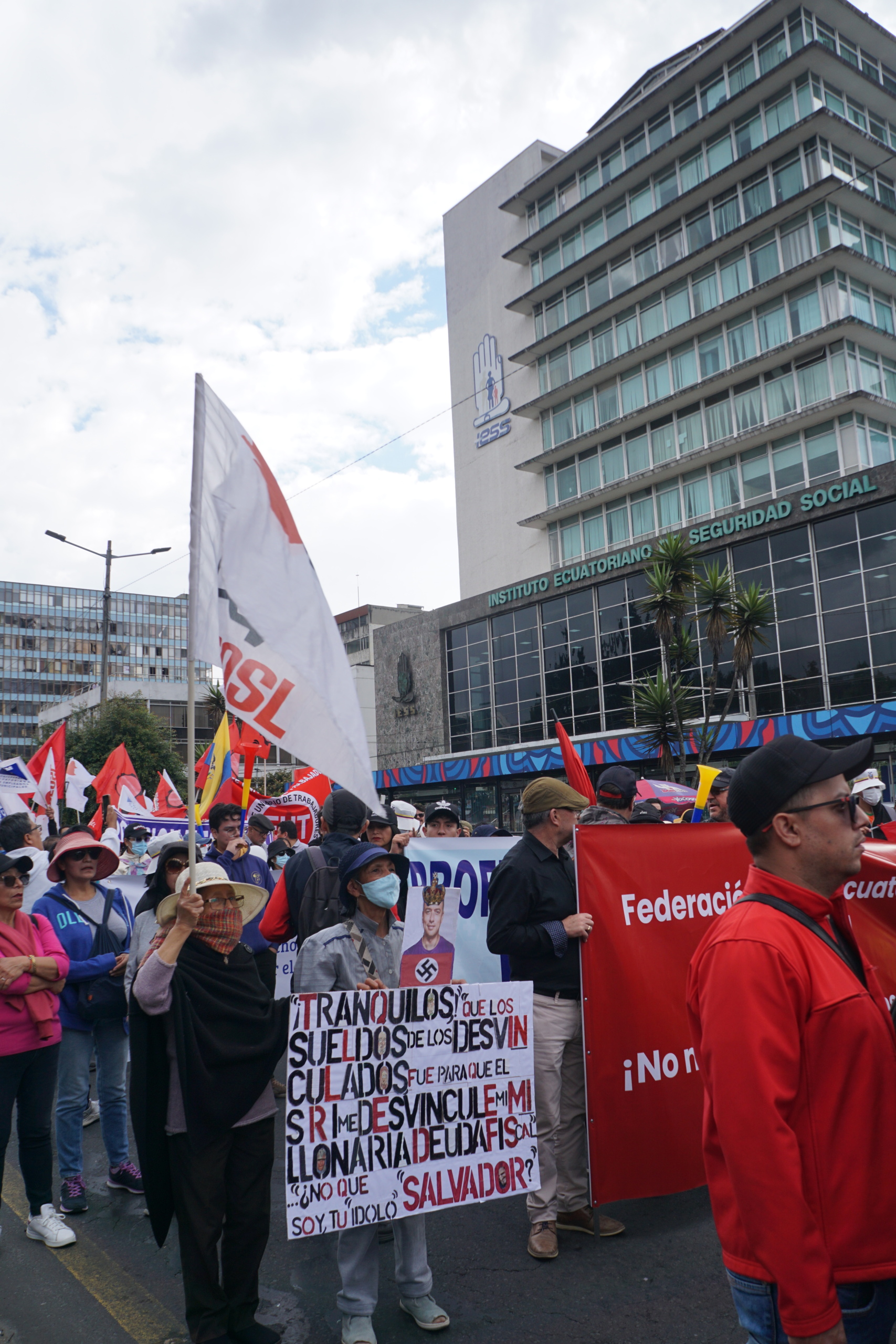 El 25 de julio de 2025, Quito fue el epicentro de manifestaciones masivas encabezadas por colectivos feministas, ecologistas, artistas, sindicatos y comunidades indígenas. Las protestas, que se extendieron a ciudades como Cuenca e Imbabura, denunciaron que las reformas impulsadas por el presidente Daniel Noboa responden a un modelo neoliberal que prioriza la deuda y el control antes que la vida. Las movilizaciones también exigieron la defensa de la Corte Constitucional, luego de que el Ejecutivo intentara revertir su decisión de suspender varios artículos de tres leyes impulsadas por el propio gobierno: la Ley Orgánica de Integridad Pública, la Ley Orgánica de Solidaridad Nacional y, especialmente, la controvertida Ley de Inteligencia. Esta última ha generado preocupación por disposiciones que permiten a las Fuerzas Armadas acceder a datos virtuales, bancarios y aduaneros de personas calificadas como “terroristas”, así como intervenir en bases de datos e incluso eliminar información, medidas que diversos sectores consideran una amenaza para la violación a derechos de privacidad y libertad de expresión.