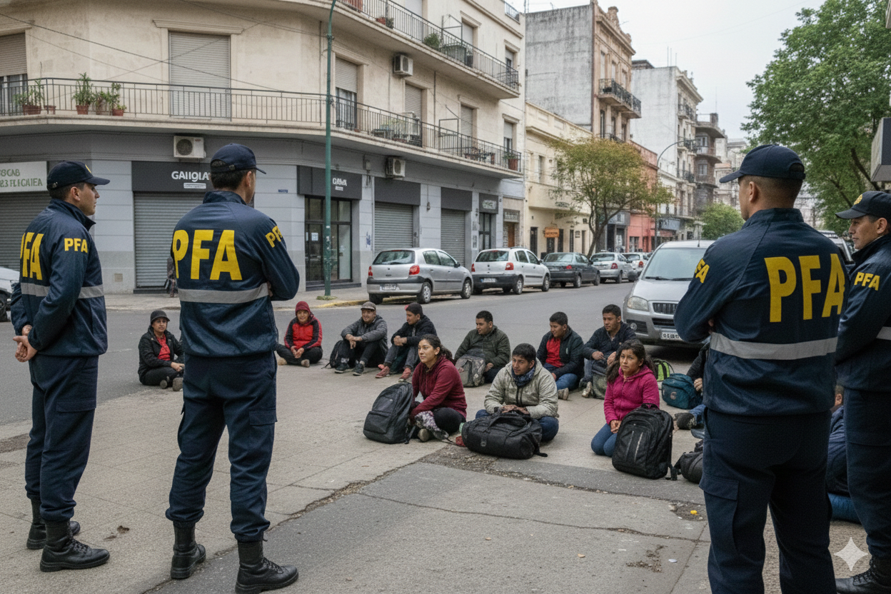 Hace una semana la Dirección Nacional de Migraciones realizó operativos junto con fuerzas policiales en el barrio de Liniers, replicando intervenciones similares de semanas anteriores. Estos controles callejeros —realizados bajo la excusa de la regularidad documental—, transmitidos incluso en medios de comunicación en vivo, mostraron pedidos de documentación dirigidos de manera selectiva a personas identificadas por su apariencia o presunta nacionalidad.