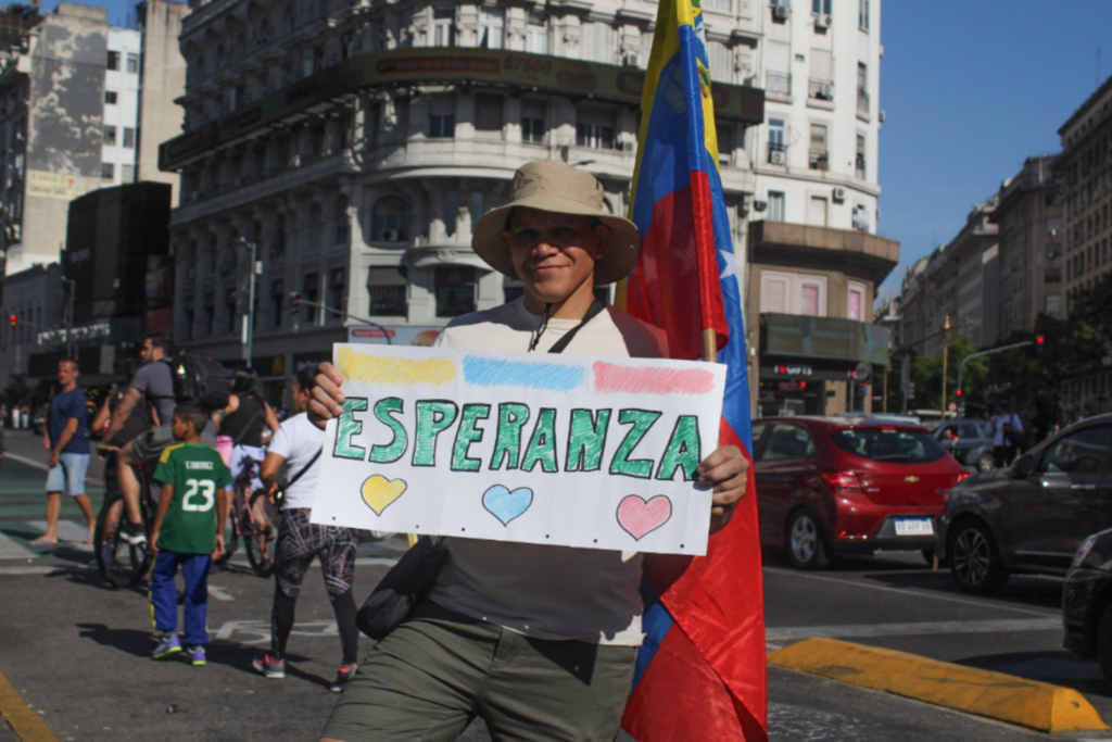 En ese contexto, Refugio Latinoamericano se acercó a las manifestaciones en la Ciudad de Buenos Aires para recoger testimonios de migrantes venezolanos que participaron en cada una de las convocatorias y compartieron miradas contrapuestas frente al nuevo escenario político.