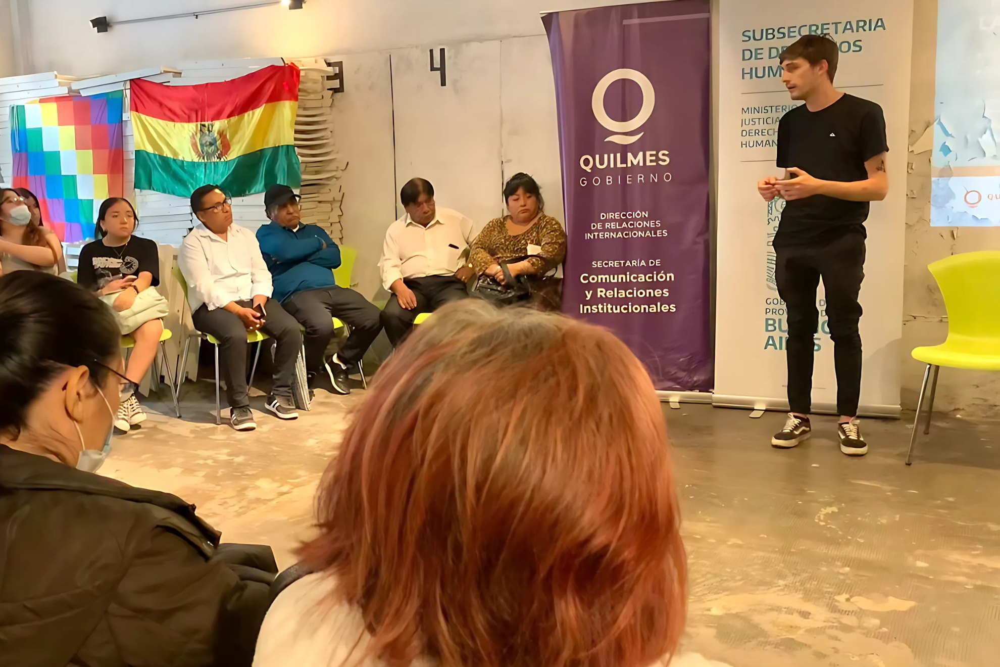 En ese sentido, el desarrollo del programa se componía de un taller donde se pasaban distintos videos, principalmente de la televisión pública, videos que contaban la historia de lo que había sido el Plan Cóndor en los distintos países latinoamericanos, cuáles habían sido sus consecuencias, cuáles habían sido los resultados, cómo habían transitado las comunidades ese proceso, para luego poder darle la palabra a cada uno de los migrantes que asistían a esos talleres, para que puedan contar sus experiencias. Recorrimos varios municipios de la provincia de Buenos Aires: Escobar, José C Paz, Quilmes, Chascomús, La Plata, entre otros municipios de la provincia de Buenos Aires, donde realmente el resultado fue muy positivo, muy humano y ahí el esperado, porque justamente no solo asistían comunidades migrantes per se, sino también referentes migrantes que activamente se encuentran en el desarrollo político y que podían ver de qué se trataba esta interacción entre lo que sucedía en sus países de origen y lo que sucede en Argentina, que eligen como país para vivir hoy. Y esa reconstrucción de la identidad y de la memoria latinoamericana se vio plasmada en los relatos y en la narrativa de esos migrantes.