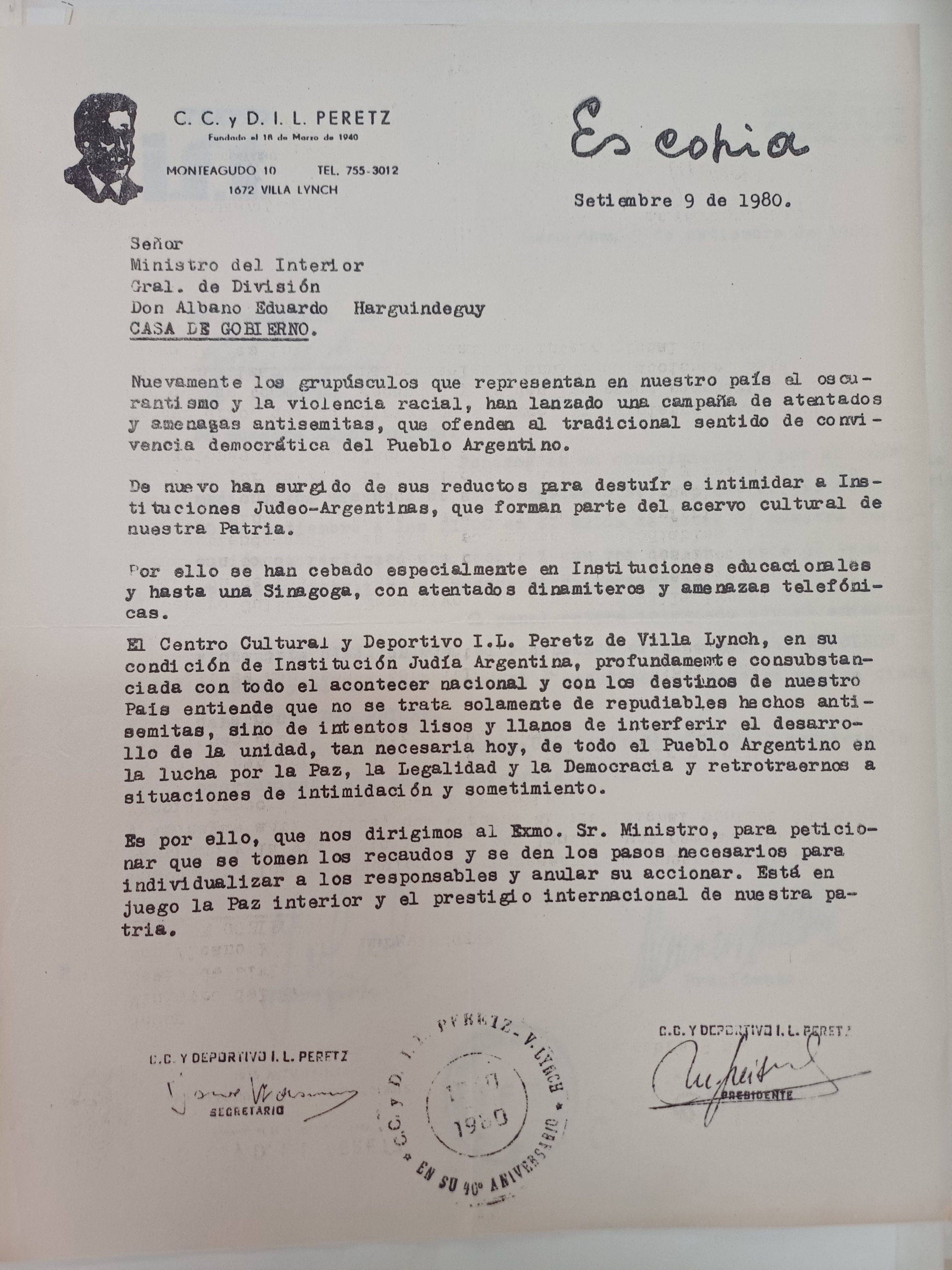 Registros del archivo histórico del Centro Literario Israelita y Biblioteca Max Nordau de los años 1976 y 1981