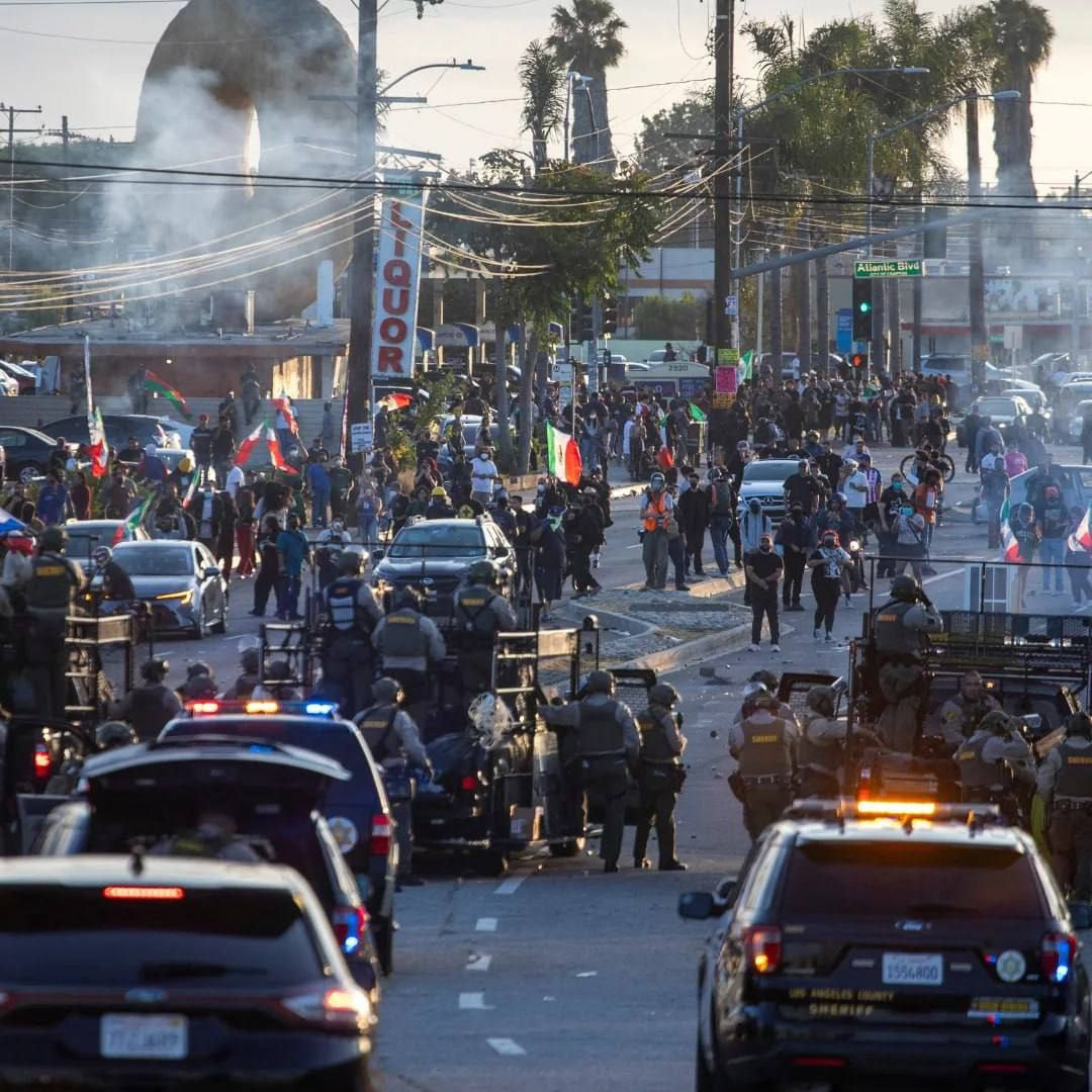 La ciudad de Los Ángeles (California) atraviesa días de máxima tensión. Las redadas masivas del Servicio de Inmigración y Control de Aduanas (ICE, por sus siglas en inglés) desataron un sinnúmero de protestas por parte de inmigrantes latinoamericanos que fueron respondidas con represión por parte de las fuerzas policiales. Sin embargo, ante la evidente insuficiencia para sofocarlas, el gobierno de Donald Trump ordenó el despliegue de 700 Marines y 2000 efectivos de la la Guardia Nacional, una medida que fue rechazada por las propias autoridades gubernamentales del Estado de California.