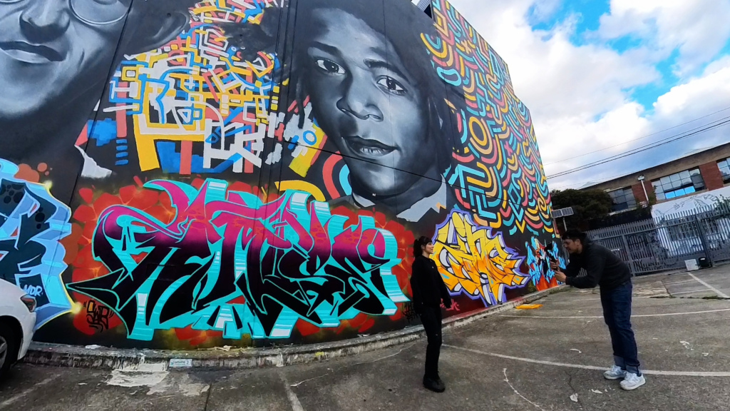 Ese entorno tuvo un efecto inmediato en su desarrollo creativo. Comenzó a pintar, a trabajar con estarcido (stencil) y a producir sus propias remeras. Lo que más le sorprendió no fue solo la diversidad cultural, sino la respuesta de los demás: “La gente valoraba lo que hacía, lo apoyaba”, recuerda. Esa validación externa, que sentía menos frecuente en Chile, fue determinante para su confianza.
