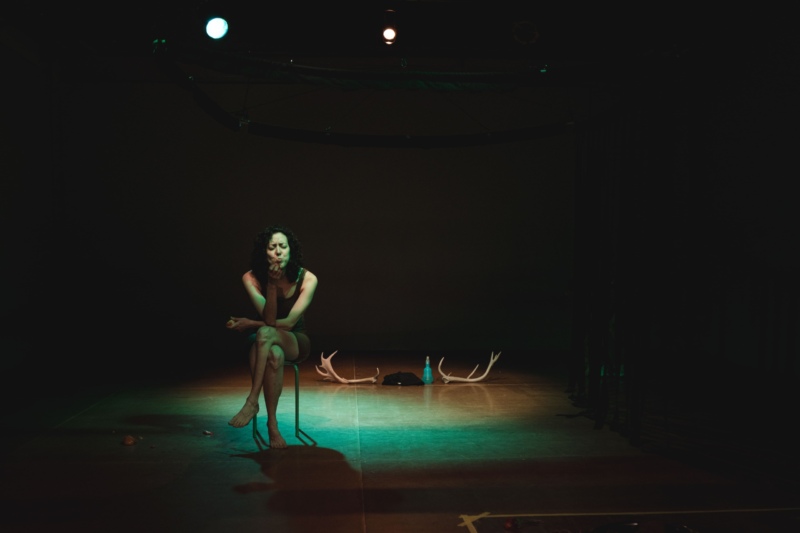Un sillón. Así arranca la pieza teatral “Mucu, o el intento de volver”. Sin embargo, no hay un sillón real en el palco, solamente su idea, su abstracción. A partir de ahí, Marialejandra Pérez, actriz venezolana y una de las creadoras de la obra, empieza a construir el escenario, casi sin objetos, con palabras y acciones que van componiendo poco a poco un sentimiento creciente que nos acompaña durante toda la obra.