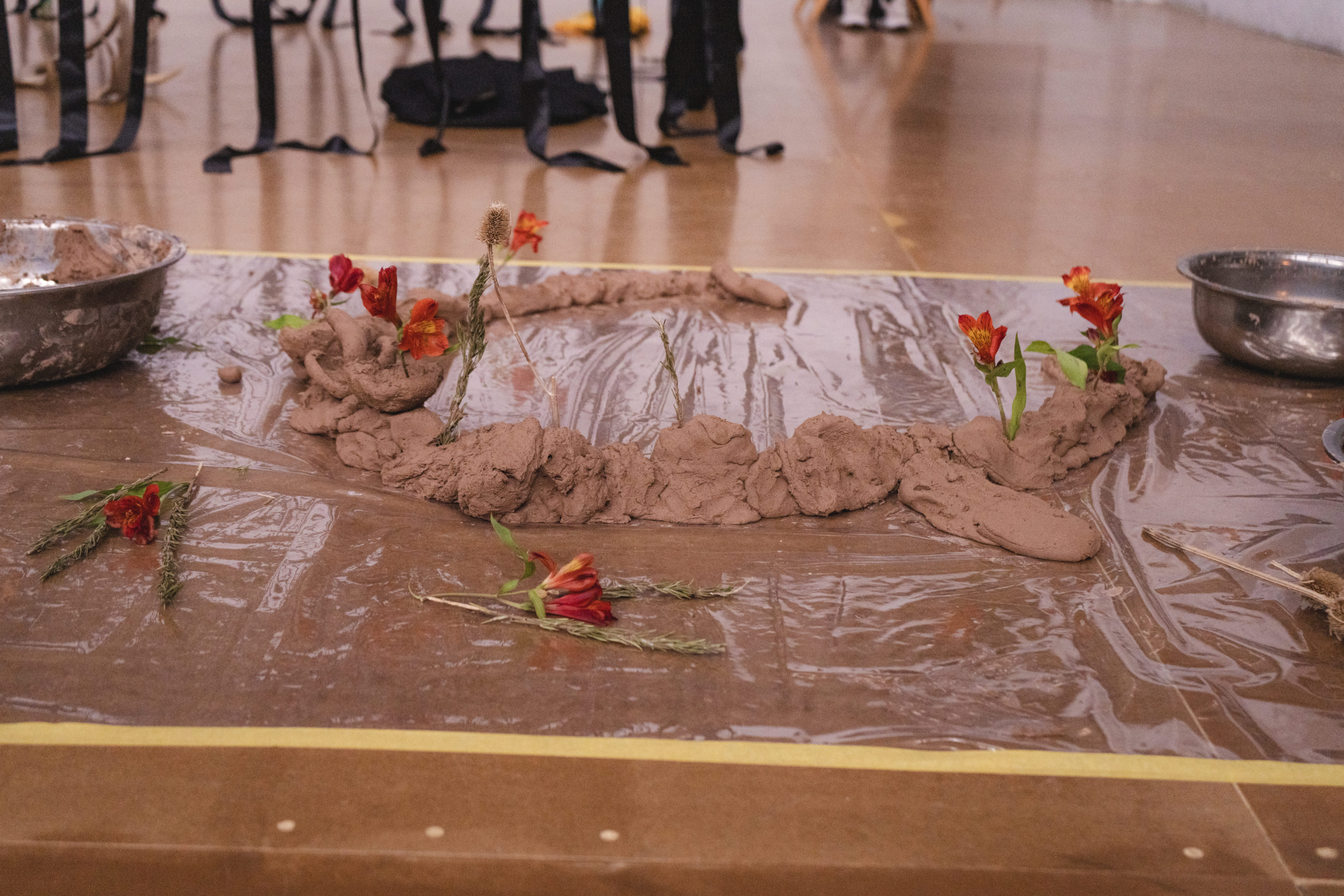 Al final de la obra, Marialejandra invita al público a que se acerque al palco, donde están puestas algunas vajillas con arcilla y ramos de flores, y le ayude a construir una especie de abrigo a su alrededor. Con esta bella alegoría, ella muestra que el “mucu” es una construcción que se hace colectivamente, y nos llama a reflexionar sobre nuestros propios “mucus”.
