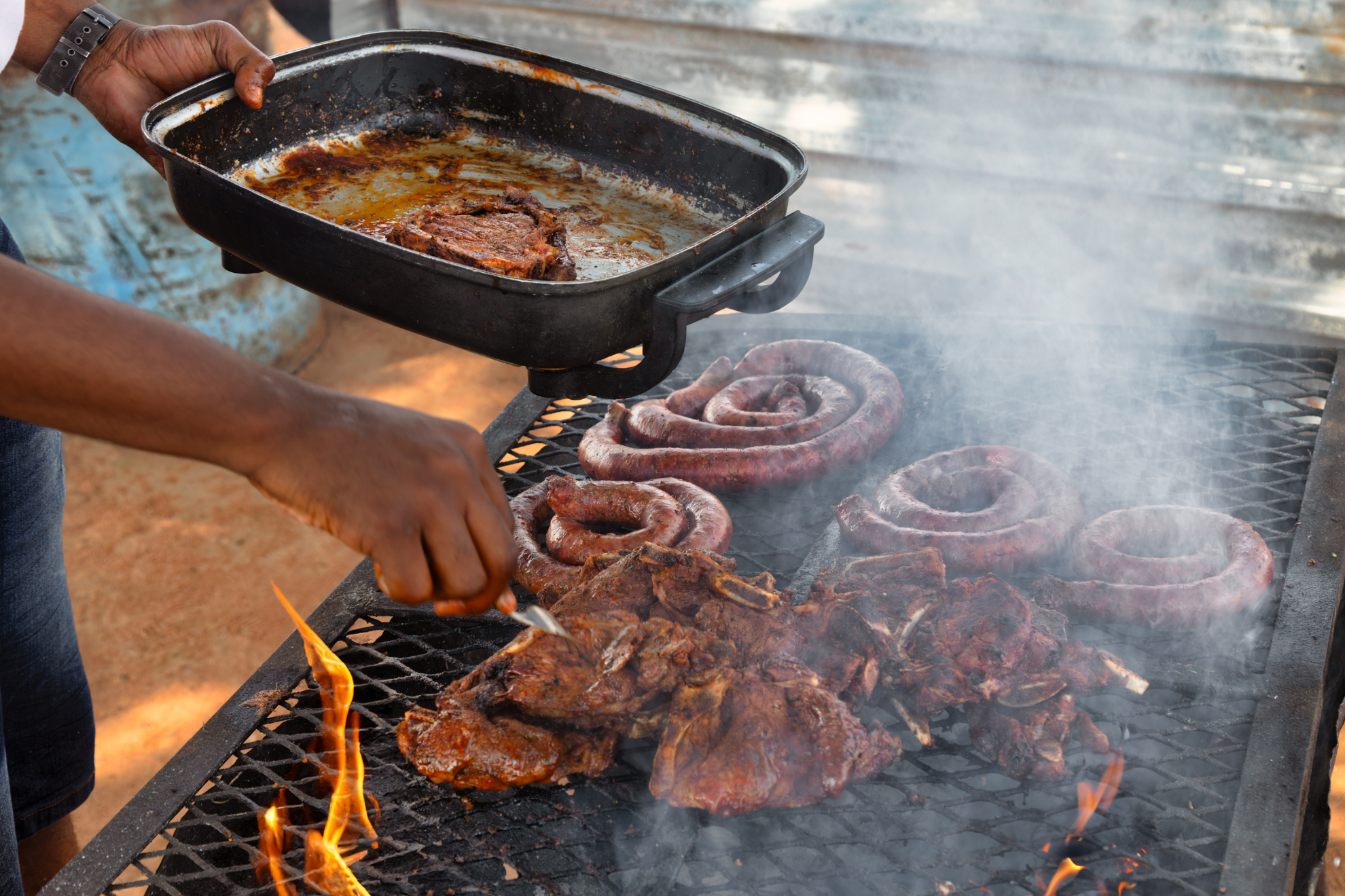 El Braai, pronunciado como Bry, es una comida típica de Sudáfrica similar al asado argentino. En Sudáfrica, como sucede en nuestro país, es común tener una parrilla al aire libre abierta construida específicamente para el Braai. A su vez, es tradicional que la gente se reúna alrededor del fuego para observar al anfitrión cocinar las carnes.